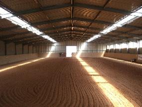 Große Weideflächen, auf denen die Pferde ganz und gar ihren Herdentrieb ausleben dürfen, eine große, helle Reithalle, ein Aussenreitplatz, sowie ein Roundpen ( Rundhalle ) gehören zur Reitanlage.